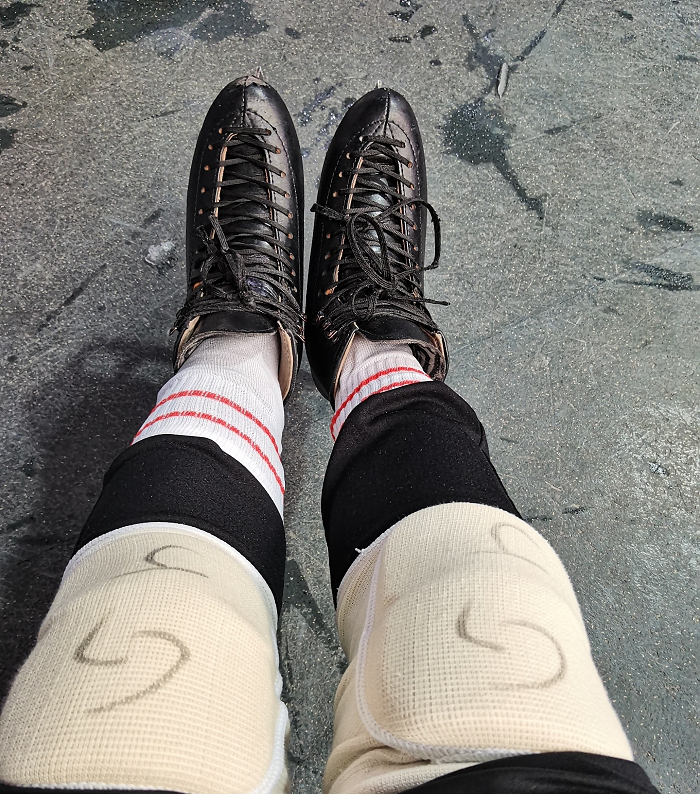 这不是把护膝也用上了,真冰应该耐摔些,胆子小怕这把老骨头不经摔,所以让自己悠着点~