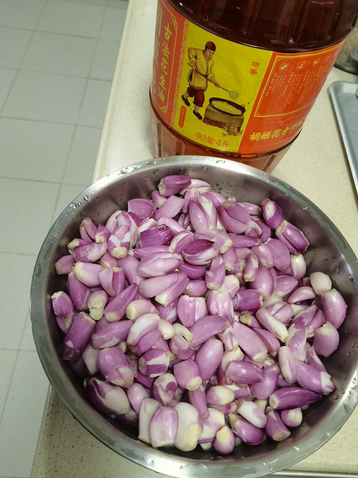 | [4楼] 三斤的红葱头呀,拨了一个半小时,现在右手大姆指和食指指甲盖还疼着。还是灰溜溜地参团买现成的了~原本想着自己用花生油炸肯定比外面买的用调和油做的更香呐,结果结果~ | |