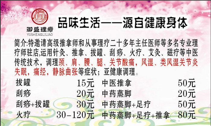 很便宜很实惠赶紧报名哦!御盛中医理疗实在好,顶给需要的朋友