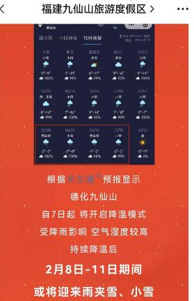| 活动基本信息 报名参加活动 网上付款退款规则 »会员在截止报名前未收到邀请信及平台手机通知短信的,视为未获邀请,已付款项将自动退还至个人账户(手机号码请确保正确)。 »本活动截止报名前任何时刻退出报名,网上已付款均全额退还。 »活动过程中遇上纠纷,请在活动结束后三天内从已报名活动中发起申诉;无申诉的,视为同意在活动结束三天之后自动结算已付款给组织者。 活动详细内容 组织者口碑(0) 根据天气预报,春节期间,九仙山有雾凇,特组织观看 ![]() “雾凇”号称中国四大自然奇观之一。 雾凇俗称树挂,是在严寒季节里,空气中过于饱和的水气遇冷凝华而成,是可遇不可求的自然奇观。雾凇非冰非雪,而是由于雾中无数零摄氏度以下而尚未结冰的雾滴随风在树枝等物体上不断积聚冻粘的结果,表现为白色不透明的粒状结构沉积物。雾凇形成需要气温很低,而且水汽又很充分,同时能具备这两个形成雾凇的极重要而又相互矛盾的自然条件更是难得。 ![]() 【景区介绍】 九仙山景区面积约30平方公里。气象景观——云海、佛光,雾凇;人文景观——唐代石雕弥勒佛是九仙山风景区的特别佳景。九仙山是历代闽南著名的旅游胜地和佛教活动重要场所之一,是泉州市第一批重点风景名胜区。次于四川峨嵋山、千佛山、吉林天池,列居全国第二,山顶有全国重点、福建省唯一的高山气象站——九仙山气象站。山上由于长年云遮雾绕,风云变幻、经常出现云海、云瀑、佛光,雾凇等气象景观;冬天,瑞雪纷飞,银装素裹,是闽南观雪景的绝佳去处;还有高山奇葩——午时莲,奇竹——四角竹、奇树——一木四树以及珍稀的蝾螈(四脚鱼)。九仙山的奇石,千姿百态,形态逼真。有仙桃石、寿龟石、夫妻跷跷石、旋转石,还有的如鼓、如狗、如狮、如象、如法印等。异洞有蛇岳洞、九十九洞、摩云洞、齐云洞、弥勒洞等,“大者容数榻,小者蹲数人”,有的洞里有洞,有的洞洞相通,而弥勒洞,弥勒佛端坐洞中,光从石缝入,水从洞底出,洞顶佛光陷现,入洞气象幽深、清净,令人如临仙境,玄妙神奇,堪称一绝。 ![]() 行程安排 07:00 在SM一期广场集合; 07:20集美戴曼斯酒店接人后,一路欢声笑语抵达景区。欢迎新老朋友加入到我们大家庭中来,车上呢,是我们认识新朋友的时间,是我们最欢乐的时光,车上睡觉的到时粘个给他!一路【团队破冰】,【认识你我他】,【分组分队】,欢乐互动; 9:00 到达九仙山,办理检票手续。开始游玩,山上由于长年云遮雾绕,风云变幻、经常出现云海、云瀑、佛光等气象景观;冬天,瑞雪纷飞,银装素裹,是闽南观雪景的绝佳去处;还有高山奇葩——午时莲,奇竹——四角竹、奇树——一木四树以及珍稀的蝾螈(四脚鱼)。九仙山的奇石,千姿百态,形态逼真。有仙桃石、寿龟石、夫妻跷跷石、旋转石,还有的如鼓、如狗、如狮、如象、如法印等。异洞有蛇岳洞、九十九洞、摩云洞、齐云洞、弥勒洞等。 【领队会带领大家一起参观,如果地面不结冰,乘坐景交车上山;若路面结冰,则需要步行上山,退20景交费】 (因山上条件限制,也为保证更多时间欣赏美景,午餐自带干粮,建议带足温水、毛包、牛奶等干粮。) 16:00左右 团队归位,回到大巴上,告别让你流连忘返,让你流汗湿身,让你欢乐,让你怀念,让你腿酸,让你震撼的九仙山之旅,驱车返回厦门。 一路可嗨歌欢声笑语,可渐入梦境好好睡一觉。 温馨提醒: 1.山中寒冷,请做好御寒准备,登山请穿舒适的运动鞋~ 2.午餐自理 3.雾凇的形成跟温度、湿度都有关,天气不确定,所以雾凇时有时无,程度也不一定~ 备注:因雾凇形成条件严格,要湿度、温度、风力条件均合格才能形成雾凇,形成与否与程度如何,不能百分百保证哦。 ![]() 【活动联系人】红豆 TEL: 15960275146/18850182386 【集合时间】2月10日、11日早上7:00 【集合地点】岛内SM肯德基门口 集美戴曼斯酒店门口 7:20 【费用预算】198元/人(车费保险门票电瓶车,不含午餐),身高一米二以下小孩:148元/人(车费保险,不含午餐电瓶车门票)。 【活动强度】★★(五星为最高难度) 【风险级别】★★(可能遇到的风险:车险、跌倒、溺水、蛇虫叮咬,摔伤等) 【活动性质】自助游 【活动形式】当天来回 【活动人员】户外自助游爱好者 【交通方式】包车 【报名方式】两个选择一个 1.点击本帖绿色字“报名活动” 2.微信报名:添加领队微信18850182386或15960275146,将个人真实姓名+身份证号(包含外带人员的名字跟身份证号)+上车地点+报名“九仙山活动”发给领队 切记: 活动前一天晚上21点之前,必须向组织者提供正确的真实姓名、身份证号码,如果非身份证或者10岁以下儿童,还需提供性别、出生年月日。若超过时间、提供信息有误或未提供以上信息者,视为放弃办理保险,并责任自负,风险自担! ![]() 行程标准: 1、用车:空调旅游大巴车(每人一正座); 2、门票:九仙山大门票+景交车 3、用餐:餐费自理,请自带午餐; 4、导服:优秀全陪陪同服务; 5、保险:代购旅游意外险; 备注:客人确认报团后出发前三天退团,需产生损失100元/人;当天取消费用全损不退! E部落提醒报名活动会员 报名参加活动应注意:对于在非公众场合或较偏地点举办的活动,最好带上若干朋友一起参与;活动结束后,不要随便接受不熟悉会员的接送。对有一定风险的活动,请尽量选择有代购保险的参加。如果您确认报名参加活动,即意味着您