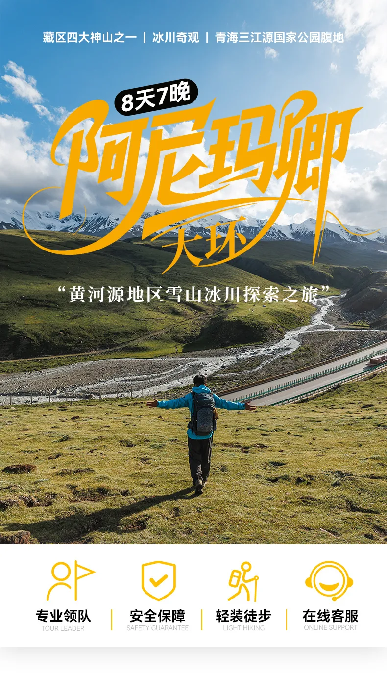 | 活动基本信息 报名参加活动 网上付款退款规则 »会员在截止报名前未收到邀请信及平台手机通知短信的,视为未获邀请,已付款项将自动退还至个人账户(手机号码请确保正确)。 »本活动截止报名前任何时刻退出报名,网上已付款均全额退还。 »活动过程中遇上纠纷,请在活动结束后三天内从已报名活动中发起申诉;无申诉的,视为同意在活动结束三天之后自动结算已付款给组织者。 活动详细内容 组织者口碑(0) 阿尼玛卿大环|8日徒步之旅| 黄河源地区雪山冰川探索之旅 ![]() ![]() ![]() ![]() ![]() D1 全国各地▷▷▷▷3720M1.集合日晚上 : 整 ,领队会在酒店与大家开行前会 , 时间若有调整会另行通知。 33.—青海西宁曹家堡机场 ,在曹家堡机场换乘飞果洛玛沁机场。 D2 玛沁-达木乔尼合营地 早上从玛沁出发 ,沿途领略千沟万壑 ,沟壑纵横的黄土地貌 。乘车大概 小时左右到达徒步起 点 ,稍作整理开始徒步之旅 ,在这里徒步每一片草原都是一幅画 ,每看一眼都是风景 ,每行一步都有故事 。雄奇美丽的山河 ,恍如传说的景色 ,今天在达木乔尼合露营。 住宿: 达木乔尼合营地(露营) 餐食: 早餐(含) 午餐( 自理) 晚餐(营地餐) 行程: 车程约 ,徒步约 5-6h▷4450M-达木乔尼合垭口4630,右手边就是阿尼玛卿 6268▷▷▷11KM ,徒步 46304500M-给日格营地 今天早餐过后我们开始离开营地 ,相比前面两天要难一点 ,今天徒步公里数是本次行程最长的 一天徒步 km ,途中可以看到阿尼玛卿主峰海拔 km ,今晚露营给日格营地。 住宿: 给日格营地(露营) 餐食: 早餐(含) 午餐( 自理路餐) 晚餐(营地餐) 行程: 徒步约 7-8H▷4150M 给日格营地15▷▷▷15KM ,徒步约 海拔: 扎堆滩营地 D6 扎推滩营地▷▷▷147-8H▷4550M-知亥代尼合垭口▷▷▷15KM ,徒步约 4550M,右哈龙营地约 D8 右哈龙营地-玛沁 今天随着太阳升起我们也迎来了徒步的尾声 ,走在草原上 ,而且还是一个由多种稀野生果树, 今日乘车返回玛沁散团本次活动圆满结束! 住宿: 玛沁县四钻供氧酒店(双人标间) 餐食: 早餐(含) 午餐( 自理路餐) 晚餐(不含) 行程: 徒步约 10-1 3H1.无传染性疾病患者,如传染性肝炎、活动期肺结核、伤寒等传染病人; 3.无脑血管疾病患者,如脑栓塞、脑出血、脑肿瘤等病人; 5.无精神疾病患者,如癫痫及各种精神病人; 7.无严重贫血病患者,如血红蛋白量水平在 50 克 / 升以下的病人; 9.无孕妇及行动不便者; 11.未满 18周岁的或年满60周岁的,不允许单独参加本次户外旅行,60周岁以上者,需在出行前出示健康体检报告(报告至少包括:血常规,心电图,胸腔X光等)。 1.处于安全考虑,请您在出行前做一次必要的身体检查; 3.因地区限制和地方政策要求,出行目的地地方管控政策不同于其它地区,港澳台同胞和外籍人士在参加活动时,请在出行前提前咨询客服是否可以参加,如果可以参加,请在出发时请带上相关证件出行; ![]() 活动组织:厦门农民户外运动俱乐部 活动内容:每周末周边一日游,不定期推出长线游!承接企业单位周边游、省内游、国内游、机票预定、酒店预定、会议服务、大巴车租赁等,可提供正规合同与发票! 微信公众号:xmnmhw Q群:110155417 农民家族—结伴游天下(备注活动) 联系人:农民 联系电话:15960376389、15659288959 地址:厦门思明区会展北路新华保险大厦23楼 0592-5083172 更多活动可关注下方【厦门农民户外】公众号 E部落提醒报名活动会员 报名参加活动应注意:对于在非公众场合或较偏地点举办的活动,最好带上若干朋友一起参与;活动结束后,不要随便接受不熟悉会员的接送。对有一定风险的活动,请尽量选择有代购保险的参加。如果您确认报名参加活动,即意味着您愿意自己承担此部分风险及由此可能产生的一切责任与后果。 已报名会员名单(共0人,含会员0人,外带0人。括号中表示外带人数) 男会员∶ 暂无任何男会员报名 女会员∶ 暂无任何女会员报名 | |