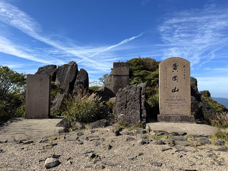 黄岗山海拔2160米,也称"黄冈山",因山顶生满黄花而得名,视野开阔,可谓"千峰来朝,万山伏首"!这座山山顶标志最多的名山之一光是纪念石碑就有至少四块,而且还有英文版的可见这座山的不凡地位。