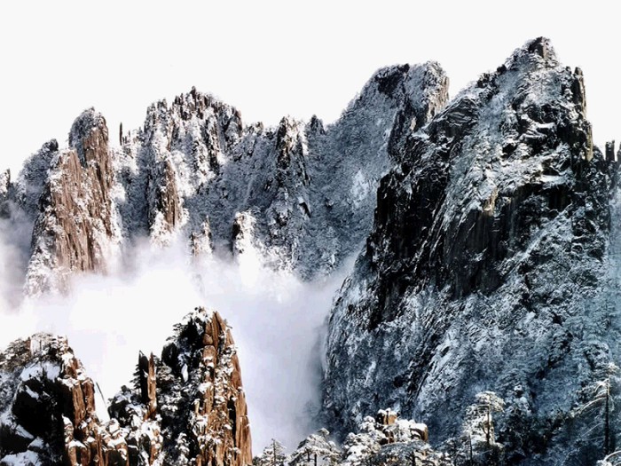 黄山:位于安徽省南部黄山市境内(景区由市直辖),为三山五岳中三山之一。黄山为道教圣地,遗址遗迹众多,中华十大名山之一,有“天下第一奇山”之美誉。郦道元、李白、徐霞客等名士都曾在此留下壮美的诗篇和历史的足迹。黄山是中国最美的、令人震撼的十大名山之一,同时又是著名的避暑胜地、国家级风景名胜区和疗养胜地,入选“中国旅游胜地四十佳”。黄山于1985年入选全国十大风景名胜;1990年12月被联合国教科文组织列入《世界文化与自然遗产名录》;2004年2月入选世界地质公园。 黄山是我国十大风景名胜之一,也是全国唯一拥有世界文化遗产黄山集中国各大名山的美景于一身,尤其以奇松、怪石、云海、温泉“四绝”著称,是大自然造化中的奇迹,历来享有“五岳归来不看山,黄山归来不看岳”的美誉。