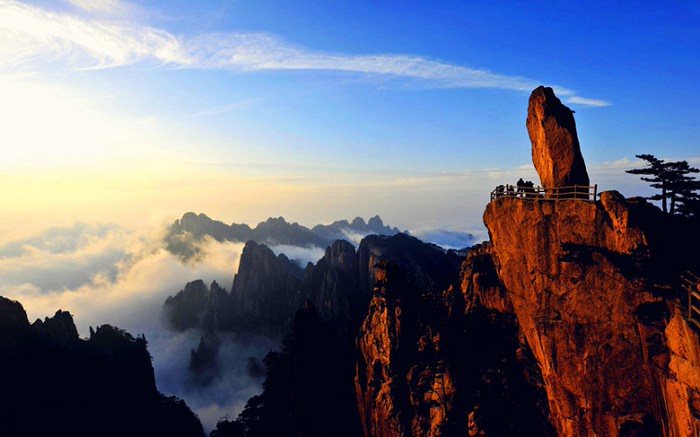黄山雄踞风景秀丽的安徽南部,是我国最著名的山岳风景区之一。黄山集名山之长:泰山之雄伟,华山之险峻,衡山之烟云,庐山之飞瀑,雁荡山之巧石,峨眉山之清凉。明代旅行家、地理学家, 徐霞客两游黄山,赞叹说:“登黄山天下无山,观止矣!”又留“五岳归来不看山,黄山归来不看岳”的美誉。更有“天下第一奇山”之称。可以说无峰不石,无石 不松,无松不奇,并以 奇松、怪石、云海、温泉 黄山四绝著称于世。其二湖,三瀑,十六泉,二十四溪相映争辉。春、夏、秋、冬皆有奇景。