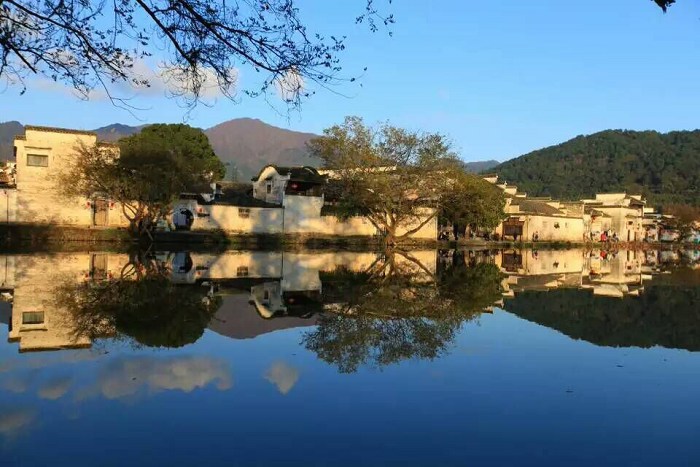 宏村:在皖南众多风格独特的徽派民居村落中,宏村是最具代表性的。从整个外观上说,宏村是古黟桃花源里一座奇特的牛形古村落,既有山林野趣,又有水乡风貌,素有“中国画里的乡村”之美誉。村中各户皆有水道相连,汩汩清泉从各户潺潺流过,层楼叠院与湖光山色交辉相映,处处是景,步步入画。闲庭兴步其间,悠然之情浓烈得让人心醉。全村现完好保存明清民居140余幢,著名景点还有:南湖春晓,书院诵读,月沼风荷,牛肠水圳,双溪映碧,亭前古树,雷岗夕照等。树人堂、桃源居、敬修堂、德义堂、碧园等一大批独具匠心、精雕细作的明清古民居至今保存完美。
