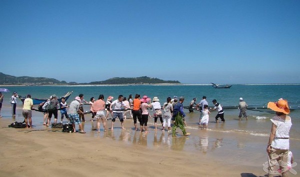 16:00:后赴坛南湾鹅头湾沙滩,组织坛南湾沙滩集体活动:团体拔河比赛、挖青蛾(花蛤)体验活动,可在沙滩打排球,踢足球。放风筝,踏浪,抓螃蟹,钓鱼。。。。适时,