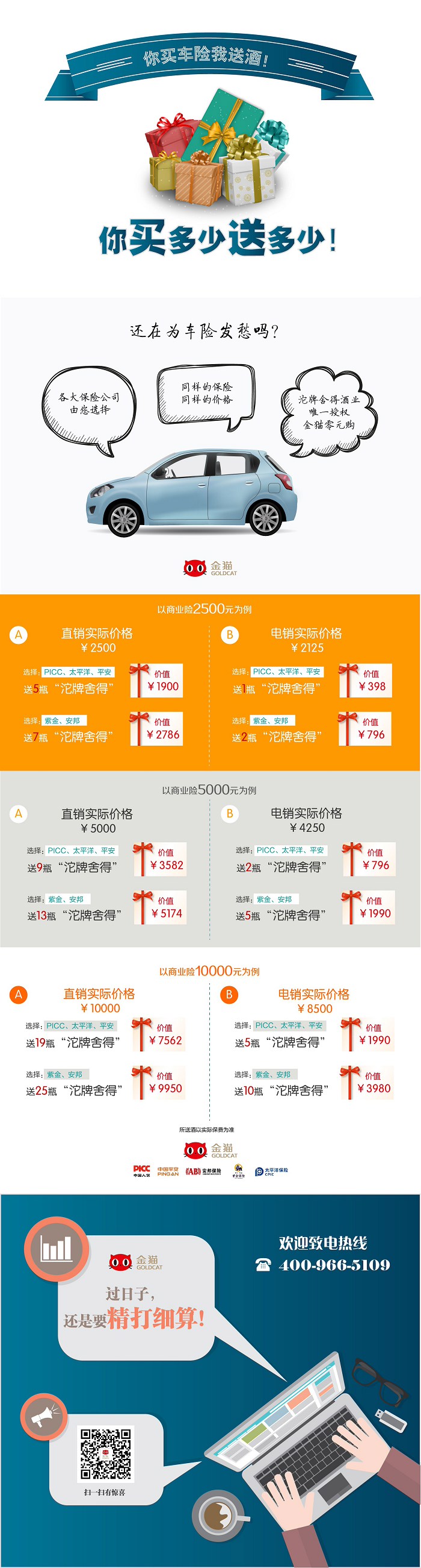 以商业险1万元为例,最高可免费获得25瓶酒,价值9950元——我们超值送!!