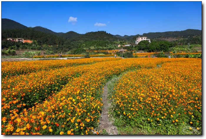 【提示】岛内忠仑公园的那片波斯菊令人陶醉,可毕竟长在城市里,缺少了那么点野性。网上看到照片,前格村一望无际的田间梯田花海,满眼的盛开的波斯菊果然壮观!看完照片有木有迫不及待的想前往,你看看下面照片是否心动准备跟上去花海拍照畅游呢。还有,采摘、践踏花朵的事之前还是有发生,希望大家尽自己最大力,保护好花海!走宋代茶马古道,观花海梯田,散步于石尾坑拱桥溪流旁,地地道道的土鸡土鸭农家菜,勤劳朴素的前格人民欢迎您的到来!不多说了,直接上照片。