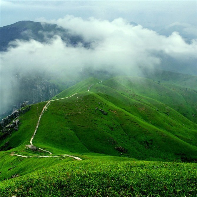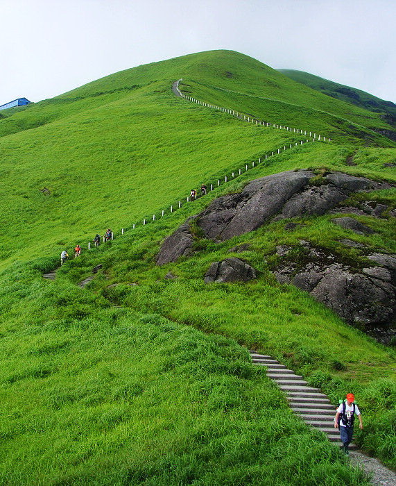 曾几何时,心中有个疑问,当我们年纪大了以后,我们还会有时间与精力去爬山吗?且不回答这疑问。现在,我们要做得是,在我们能走的时候多走走。多去见见识。绝对是没有坏处的。朋友说过,人可以畅想,随时做心灵的旅行。我却以为,想得过多费神不说,更会让人思维杂乱。就这样,我们相约武功山。武功山,中国十大著名山峰之一,亦是中国十大经典穿越线路之一,在爬山爱好者的口碑中,武功山一直是一个不错的地方。在中国国家地理网,人们是这样评说武功山的:这是一个神奇的地方,江南独有的大规模高山草甸景观。穿行在草甸间,我们是那样的渺小。曾试图要徒步去征服,却被她独有的魅力醉倒。最是那拨云见日的一丝温暖,让我们领略了其独特的气候。还有那绿油油的草甸在云海中浮沉,诱惑着我们~