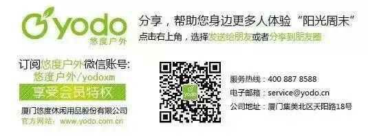 【享会员价资格】 关注-分享,具体见下↓ ① 关注“yodoxm”公众号 ② 通过微信朋友圈分享本亲子露营活动,截图发给悠度户外公众号 ③发送“e部落+报名姓名+电话”,悠度客服落实返现