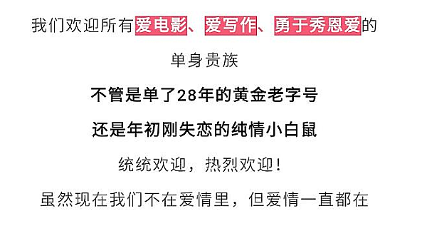 活在电影世界 | 【03.04周六晚】寻找你的电影情人 报名时间:2月20号--3月04号 活动时间:3月04号 19:00~21:30 活动地点:软件园二期望海路63号之二3楼 活动费用:39.8元/人(单身23-38岁,大专以上学历,稳定工作) 活动流程:活动微信群+观影《大话西游之月光宝盒》+自我介绍和影评+“约会看电影” 活动提供:场地+自助(水果、零食、茶歇) + 6张电影票(活动成功约会即送)