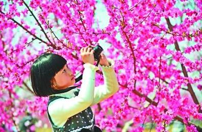 桃花山上,观赏竞相绽放的百亩花海