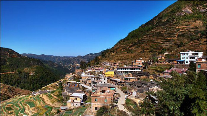 厦门军营村位于福建省厦门市同安区莲花镇,在厦门第二高峰状元尖脚下,海拔千米以上,因此厦门军营村素有"高山村"之称。它地处厦门、漳州、泉州的交界处,地理位置十分重要,环境优美,如诗如画,这里植被丰富,生态保护很好,从城里到军营村,我们走的是一圈一圈盘旋的山路,从车窗里向外看,有种"扶摇直上九重天"之感。走进军营村,城市的喧嚣,没有了城市的行色匆匆,因为我们已经被这里的静谧所感染。站在状元尖的山脚下我们真切感受到大自然的鬼斧神工,"会当凌绝顶,一览众山小",周围群山碧水环绕,犹如桃源之境,陶冶着我们的心灵。