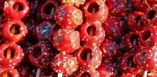 做冰糖葫芦 糖葫芦是中国传统小吃,它是将野果用竹签串成串后蘸上麦芽糖稀,糖稀遇风迅速变硬。北方冬天常见的小吃,让我们一起做一串糖葫芦吧!