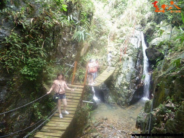 亮点二--线路景色:一线天瀑布,一线天奇景,烂漫摇晃桥,刺激挑战,乐感十足;