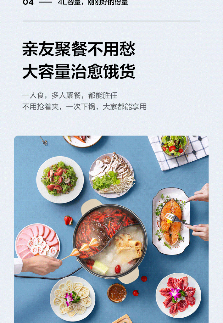 美的(Midea)多功能电煮炖煎烤炸锅家用多用途4L大容量鸳鸯电火锅炒锅分体式不粘锅DH2602Y