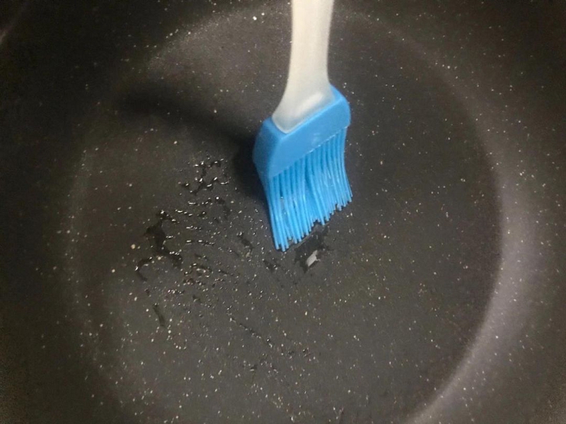 10、在锅中抹上一层玉米油(注意要用最小火,不然很容易焦)。