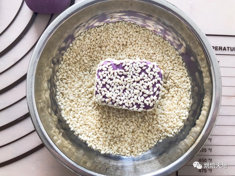 ![]() 2、紫薯切片放入蒸锅中蒸熟 ![]() 3、蒸熟蒸软 ![]() 4、趁热压成泥 ![]() 5、加入糯米粉 ![]() 6、加入纯牛奶 ![]() 7、揉成面团 ![]() 8、平均分成30克一个,先揉圆 ![]() 9、将小圆球再整形成长方形 ![]() 10、沾上白芝麻,白芝麻可以用生的 ![]() 11、平底锅刷山茶油(不饱和脂肪酸含量高),放上紫薯糯米饼小火煎熟即可 ![]() 12、四面八方都要煎一下,煎至紫薯饼两面金黄膨胀即可 ![]() 这款紫薯饼饼,不油腻。口感很好,做早餐超棒。好吃不胖 ![]() | |||||||