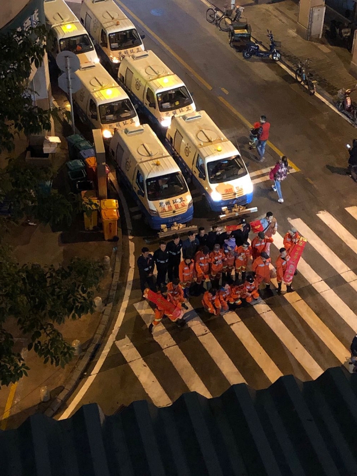 除夕夜晚上9点霞溪路清洁员工集体合影