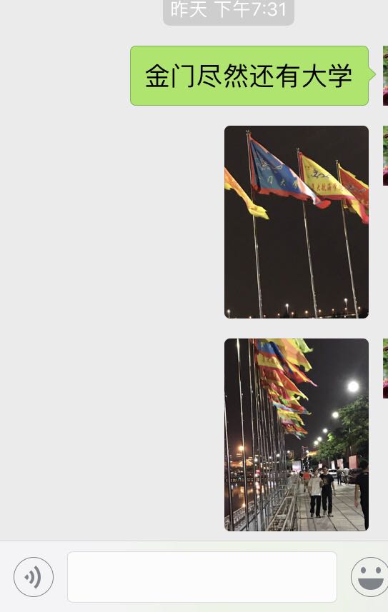 明天集美龙舟比赛,晚上转到龙舟池,靠中亭的岸边一溜高高的旗杆,杆上旗帜风中猎猎。见有“金门大学”,有些惊讶:金门还有金门大学?于是微信图片跑过金马的朋友:金门尽然还有大学?