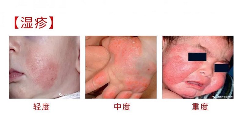 | [1楼] 夏季,很多疾病会在夏季的时候出现。小儿湿疹是夏季常出现的一种小儿疾病。很多刚刚做妈妈的人,一定不明白生孩子一开始还好好的,为什么会突然之间全身长满了红色疹子,甚至还有水泡?”其实这是宝宝得了湿疹。 但是很多宝妈痱子、湿疹根本傻傻分不清楚,那么今天我们就来好好聊一聊! ![]() 湿疹热疹到底如何区分 湿疹可能是皮肤的屏障功能不好,抵挡不住外界的各种刺激物(比如细菌病毒、过敏原、化学制品)入侵到皮肤内部,之后形成的皮肤的炎症。除了皮肤问题外,有少部分孩子湿疹是过敏因素导致的,比如食物过敏或者环境过敏的表现。 痱子是因为在高温闷热环境下,出汗过多,不易蒸发,汗液使表皮角质层浸渍,致使汗腺导管口阻塞,汗腺导管内汗液滞留后因内压增高而发生破裂,外溢的汗液渗入并刺激周围组织而于汗孔处出现丘疹、丘疱疹和小水疱。细菌感染、紫外线照射、角质层过度脱脂等可诱发痱子。 所以,一个主要原因是干燥摩擦,而另外一个是湿热。所以,一个要保湿,一个要干爽降温。 看形状 病急乱投医的结果就是痱子越捂越严重,可能形成脓痱;而湿疹越干越厉害,导致增厚、渗出,成为真正的“湿”疹。 总体而言,痱子是一粒粒的,而湿疹都是一片片的。 ![]() 咱们能看到的痱子分为3种,按照严重程度,分别是晶痱、红痱和脓痱。但不管是哪种,不管是否严重到密密麻麻的连成片,仔细看都是一粒粒的。 ![]() 轻度湿疹,看着就像皴了的皮。 中度湿疹,湿疹有渗液了,也是成片的。 重度的湿疹了,皮肤除了渗液,都增厚了,并且不光脸上有,手上也有,也是一片一片的。 ![]() 所以,通过皮疹的样子,能比较轻松的分辨出是湿疹还是痱子。 看部位 痱子容易出现的部位,大家一看就明白,这些地方孩子最常捂着,最容易热、出汗。当然,只要有汗腺的地方就可能起痱子的。有些孩子热的脸上也都是痱子呢。 湿疹容易出现的部位,都是容易摩擦的部位或者关节处,像尿布区这些捂得比较严实,比较潮湿的地方,一般不会出现湿疹。 看皮疹的变化 湿疹不经过保湿等处理,不会变好,只会变坏;而痱子只要温度一降低,就有改善。所以,如果仅仅通过打开空调就能好转的皮疹,一定是痱子。 看孩子感觉 湿疹时,孩子是痒的感觉;而痱子是有些刺痛的感觉。所以对于大些的孩子能描述的,比较容易区分。 宝宝湿疹怎么办? 严重的,使用激素软膏治疗皮肤炎症,皮肤保湿增加皮肤屏障功能避免继续的刺激。对于轻度的,无需激素,只保湿就行了。 当然,不管是什么程度的湿疹,都得减少刺激,比如沐浴露,摩擦,温度太高或者太低等等。 使用激素前,需要专业医生指导使用不可以自己乱用,我在这里就不赘述,咱们谈谈保湿。 保湿的关键是用量要够,效果是孩子的皮肤一直是润润的,如果每天涂着保湿霜皮肤还干,那肯定是没有涂够,对于较重的湿疹,就相对需要的量多一些,但这个还是要自己去判断。 | |