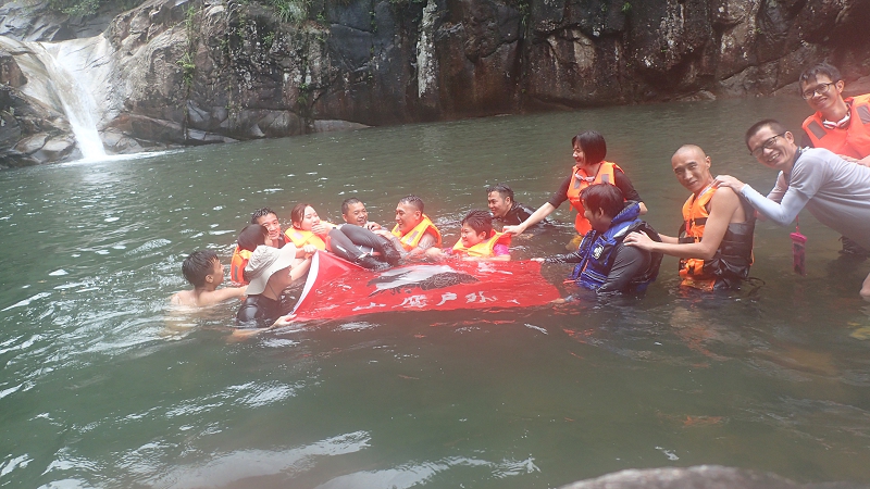 | 活动基本信息 报名参加活动 网上付款退款规则 »会员在截止报名前未收到邀请信及平台手机通知短信的,视为未获邀请,已付款项将自动退还至个人账户(手机号码请确保正确)。 »本活动离报名截止时间1天前退出线上报名,已付款全退;其余时间退出款项不予退还。 »活动过程中遇上纠纷,请在活动结束后三天内从已报名活动中发起申诉;无申诉的,视为同意在活动结束三天之后自动结算已付款给组织者。 活动详细内容 组织者口碑(2) 永泰西部的东湖尖海拔1681米,是福州地区第一高峰,这里处于福建第二大山脉的东麓,四周还有数座千米山峰拥抱主峰,大喜溪即发源于云烟缭绕的东湖尖。大喜溪,全长14.5公里,自上而下流经里洋、大喜、溪口三个村庄。 大喜溪河床较为宽阔,溪水清澈,溪流中多为浑圆白净的岩石。全程顺流而下,其中有近10处必需泅渡,最长距离有百多米,入水模式有跳水、滑水,其中还有龙潭两处危岩断崖,大家要做好防水准备,山鹰免费提供救生衣,即使不太会水的女孩也可以安全游过去。 最为惊险刺激的是后半程的龙潭,8米高的瀑布成了我们的高台入水滑道,别无选择,玩的就是心跳!!! 喜欢运动,喜欢户外的朋友们赶紧跟上了哟... 【活动组织人】18650816081 游龙 【截止时间】活动前一天傍晚18:00,超过这个时间的请电话确认是否还有位置,提前满座会提前截止报名,所以请尽早报名。超过18:00取消报名的均算放鸽子,请务必自觉补交相应费用。 【报名方式】三种方式选一种即可 方式一:网站报名,参加者直接在网站报名; 方式二:短信报名,因网站无法增加外挂,或不方便在网站报名的。将参加哪个活动 +个人报名网名+真实姓名+身份证号+上车地点+参加人数(报名几个人就发几个人的名字跟身份证号)发到活动组织人手机上,收到会回复,无回复请电话确认,没写电话的视为没报名)切记:能在网站报名的请务必在网站报名,方便组织。 方式三:微信报名(游龙:15959258055,验证码: 大喜溪),直接与管理员报名(由各群管理员进群网站跟活动贴—录入)以便组织者统筹安排。 1、报名以打款为标准,报名了没打款的,不算报名成功,不来自己找人顶上,不来也不退;