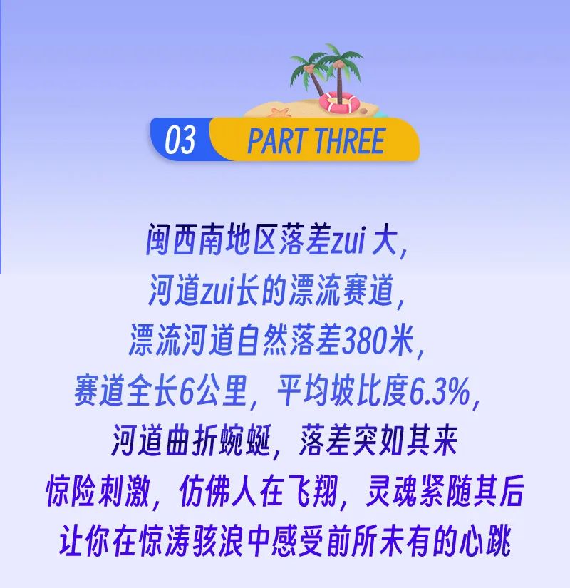 天子龙门峡漂漂流 空中七星级漂流 星级品质,值得享受! 河道全程长3公里,总落差约120米, 途经3个大型天然瀑布, 单一段位最高落差18米, 最长连续落差河道367米, 全程高于3米的大小落差20余处, 体验时间约80分钟! ![]() ![]() ![]() ![]() ![]() 开漂啦!!! 一个俯冲而下,刺激的五官都移位了 背着坐是不是更刺激呢? 因为你背后的一切都是未知的.. ![]() ![]() ![]() ![]() ![]() ![]() ![]() ![]() ![]() ![]() 位于永定区湖坑镇南溪“土楼沟”景观中心的南江村,东西两侧山脉连绵、山峦重叠,水稻梯田与古色古香的土楼相辉映,600年村落在此延绵。 景区现存完好的明清建筑30多座,民居、学堂、书屋、古井等一应俱全,客家古村落的风韵尽显![]() 南江村的土楼独具特色,建筑形态有五凤楼、府第式方楼、方形楼、走马楼、五角楼、八角楼、纱帽楼、圆楼、半月形楼、一字形楼等数十种。 ![]() 千姿百态、异彩纷呈,依山就势,布局合理,错落有致,体现了人与大自然融为一体,具有浓郁的山区客家风情。 ![]() ![]() 一去二三里 烟村四五家 ![]() 07:30厦门SM肯德基门口集合 07:50 海沧石塘天桥下(有公共厕所那边)接人 10:00到达【客家水乡▪南江村】 10:00-11:00前往游览【客家水乡▪南江村】南江村是福建省文明村落,中国传统古村落,全国生态文化村,全国宜居示范村,全国文明村等称号,景区现存完好的明清建筑30多座,民居、学堂、书屋、古井等一应俱全,客家古村落的风韵尽显。南江村的土楼独具特色,共有23座,建筑形态有五凤楼、府第式方楼、方形楼、走马楼、五角楼、八角楼、纱帽楼、圆楼、半月形楼、一字形楼等数十种,可谓千姿百态、异彩纷呈,依山就势,布局合理,错落有致,体现了人与大自然融为一体,具有浓郁的山区客家风情。 11:20在【客家美食体验馆】享用特色客家宴,餐厅设在具有300年历史的方形土楼南兴楼内,就餐环境极具特色. 12:20前往【天子龙门峡漂流】 13:20抵达服务中心后,前往更衣室寄存更换漂流衣物(柜子寄存自理,换洗衣服也可直接放车上) 14:00前往【天子龙门峡漂流】,龙门峡国际漂流基地,景区位于新中国革命摇篮,中国客家祖源,土楼群之乡、温泉之乡的福建省龙岩市永定区,漂流基地依托百里群山中的国家级大型水库,沿龙门峡谷自然溪流,由权威漂流设计团队规划设计打造,并由中国船级社检测认证。龙门峡国际漂流基地森林覆盖率达98%,景区内绿树成荫,古木参天,鸟语花香;漂流沿途悬崖峭壁,流泉飞瀑,潭水清澈见底!各种野生动物飞禽如黄猄,野猪,飞狐,白鹇,野鸡等栖息于森林山涧,悠然自得。赛道全程6公里,犹如一条盘旋峡谷中的巨龙正昂首飞腾,一飞冲天!漂流沿途穿越于富氧森林峡谷中,清爽宜人,野猪林,老虎谷,仙人洞,犀牛潭,盘龙十八湾……380米的漂道落差,最大漂流叠差达45米,漂流中时而疾速飞驰,时而消遥嬉水,途中悬崖漂段旁79米高堪比美国尼日加拉大瀑布的加持,更令人惊天动魄,荡气回肠!漂流用水使用饮用级别的森林山泉水库蓄水,水质一流,令人玩得放心舒心,漂流完毕是全国唯一使用温泉热水淋浴的漂流景区,星级品质,值得享受!漂流基地旁边有国家AAAA级旅游度假区天子温泉酒店,大型会议中心,美食餐厅以及大型水上乐园配套服务,让你挑战惊险刺激漂流同时可以舒享度假旅程,快乐无忧!龙门峡国际漂流基地,品质漂流,森林秘境!欢迎您! 适时结束行程,返回厦门。 以上为参考行程,如有景点时间前后顺序调整,以当天导游安排为准,以上为散拼路线,会有等待情况出现,敬请各位游客谅解。 服务标准 【费用包含】 1、用车:旅游空调用车,根据人数安排车型(每人一正座); 2、门票:含景区首道门票、漂流门票,标明自理的除外; 3、用餐:1正餐,不用不退; 4、导游:全程优秀工作人员陪同服务; 5、保险:最高40万旅游意外险。 6、用水:每人赠送一瓶矿泉水 【费用不含】 1、旅途中一切个人消费; 2、因不可抗力因素而需要更改行程时所产生的一切费用; 3、1.2米以下儿童以及65岁以上老人,不可漂流; 4、团费包含的内容中未注明或行程内注明费用自理的项目。 备注:确认报名三天后取消收取损失100元,当天取消费用全损!导游有权在不减少景点情况下调整行程顺序! 激情漂流旅游提示 ●1.2米以下、65岁以上游客谢绝漂流●有严重心脏病、精神病、高血压、高度近视等疾病者不宜参与此类活动;●漂流时全身将湿透,请带一套内外衣服用于备换;●请勿着白色衣物漂流,以防长时时与艇具、救生衣亲密接触后,留下红色印记;●漂流时请穿长袖衣裤以防曝晒,穿凉鞋、带防晒霜、毛巾洗澡(亦可在景区小卖部购买);●漂流时身上请勿带任何东西(如香烟、钞票、手机等遇水会坏的或易碎品);●漂流时应听从安全员组织和安排,团结友爱,以保证您在紧张刺激快乐安全中漂流。 【漂流注意事项】: 1.哪些人不能玩漂流? 半程漂: 身高1.2米以下的儿童以及55岁以上的游客人不得参与 全程漂: 身高1.5米以下的儿童以及55岁以上的游客不得参与 备注:如55周岁以上坚持漂流需要景区现场签署免责协议~体验半程漂 酒后、残疾人、孕妇、患有精神病、心脏病、骨质增生、腰椎盘突出、外伤未愈以及正在治疗等对身体危害性严重疾病的游客不得参与漂流 2.更衣柜: 漂流不提供免费的更衣柜,若需要更衣柜可以在前台办理租用。普通储物柜20元个,押金50元个(更衣柜在漂流更衣室) 3.