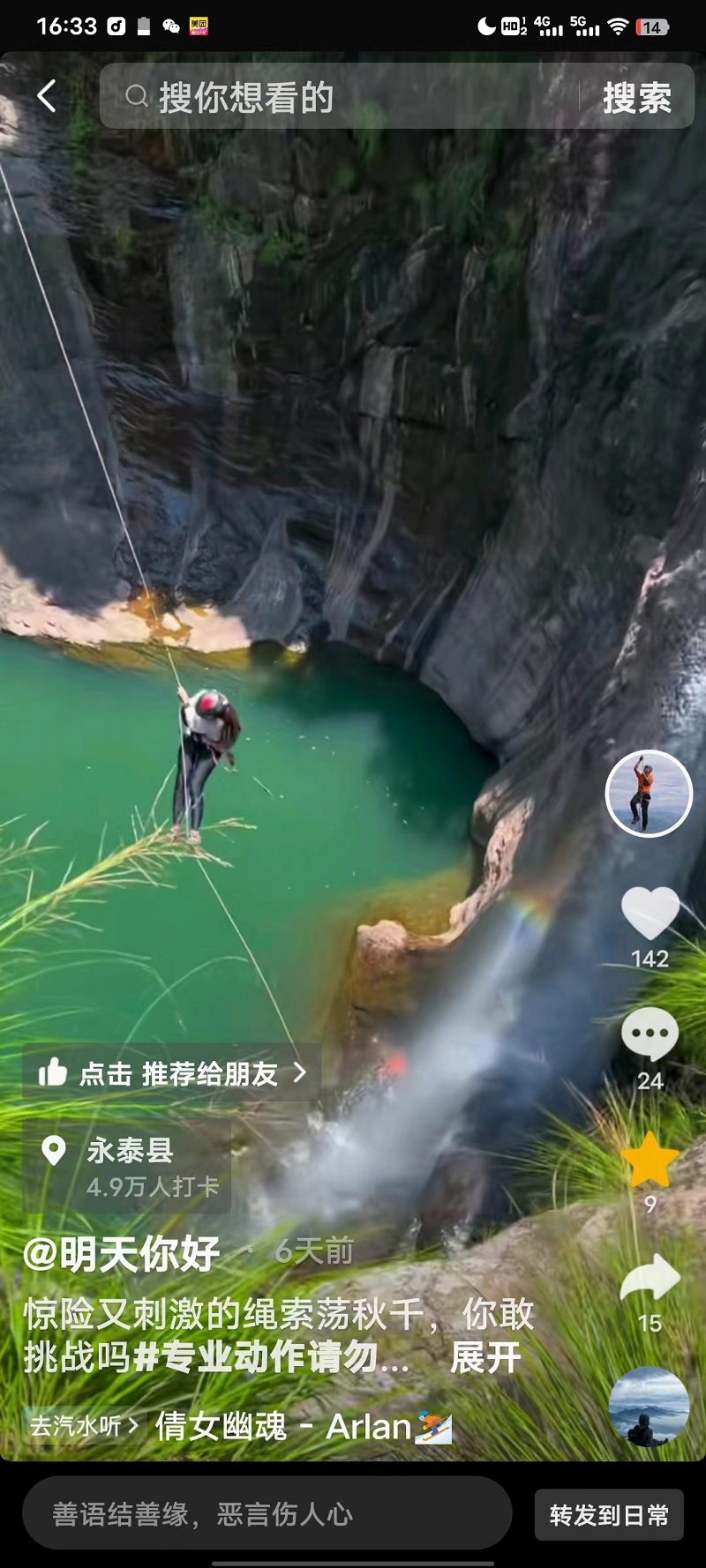 - 【山鹰】安溪英溪溯溪玩水瀑布荡秋千、野炊