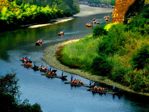 早餐后乘环保观光车前往【云窝】游览(游览时间约3-4小时),云窝以铁象岩为界,分上、下云窝。云窝背岩临水,地处武夷山精华地带,为武夷山首胜,这里历来是古代文人墨客、名宦隐潜居养心之所,此处因常有云窝飘渺而得名,是古代道人方士隐居潜读的地方。团友经茶洞,看五月第一壁——【晒布岩】,之后前往武夷山第一胜地【天游峰】,此处三方环水,登其颠观云海,犹如天上游,九曲全景尽收眼底, 午餐后前往【九曲溪竹筏漂流】、后游览【虎啸岩】(游览时间约3-4小时),欣赏【虎啸八景】:白莲渡、集云关、宾冀同洞、语儿泉、法语悬河、不浪舟、普门兜、坡仙带。晚餐后入住酒店。