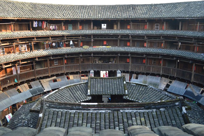 14:30 参观怀远楼——是建筑精美,保存完好的双环圆形土楼。与中国儒家思想完美结合,楼内楹联诗对,雕梁画栋,古朴天然,书卷气浓…充满了丰富的文化内涵。后参观华禧咖啡。