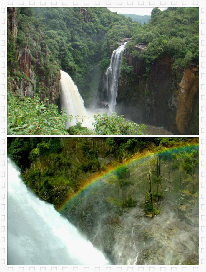 二、线路亮点: 亮点一:【瀑布】九鲤湖瀑布,最大落差达上百米,湖水沿着山间,形成硕大的瀑布,并产生很大的水雾,夏天凉爽极了。山连山,一个瀑布接一个瀑布,非常壮观。 亮点二:【彩虹】前往峡谷底部,瀑布形成的水雾四处飞溅。在阳光的照射下,不同的角度,可以看到不同的彩虹,满山谷的彩虹,你享受过吗? 亮点三:【铁索桥】铁索桥长达100米左右,链接山谷小河的两侧,由木板和铁索组成,走在上面摇摇晃晃,惊险万分,调皮的你,是否想在上面摇一摇呢?没错,有人淘气的话,在上面摇一摇,上面走的人都得扶住铁索不敢行走,因为确实是太恐怖了。 亮点四:【午餐】特色的午餐,拥有山中的野味,是真的野味哦! 亮点五:【高山、峡谷】站在最高的山顶,忍不住大吼大叫一声,山顶离山谷落差几百米,别小看几百米,因为是笔直的悬崖,所以在在山间,也会有惊悚的感觉,不由的汗毛立起来。