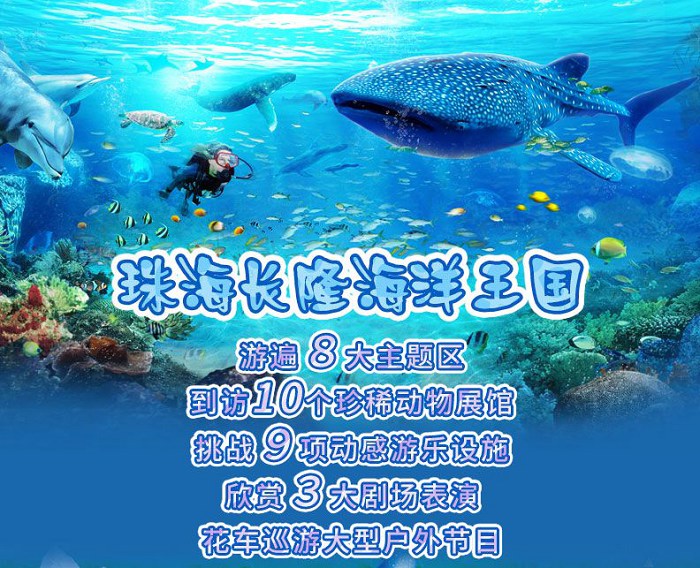 第三天:珠海长隆→ 深圳北 →厦门 餐:早 住 :无 早餐后,乘车前往珠海横琴(2.5小时左右),【长隆海洋王国】(约4小时),全面整合珍稀的海洋动物、顶级的游乐设备和新奇的大型演艺,力图打造成为世界顶级、规模最大、游乐设施最丰富也是最富于想象力的海洋动物主题公园。海洋王国拥有八大主题区,日接待游客量可高达50,000人,在这里,我们为您精心设置了10个珍稀动物展馆、9项动感游乐设施、3个大型剧场表演、19个特色餐饮、多个主题商场、售卖亭以及花车巡游、中心湖表演等其他户外表演节目。海洋王国拥有八大主题园区:惊险刺激为主的雨林飞翔,以世界顶级娱乐观赏为主的海洋奇观;适合儿童游乐项目为主的以及合家游玩的缤纷世界;以海豚观赏为主的海豚湾;以冰雪设计为主的极地探险;以水为主题的海象山;以表演为主的横琴海;以迎宾、观光、购物休闲为主的海洋大街。八个不同主题带给你八个不同的故事,让游客都置身于海洋世界中,畅游海洋动物的不同精彩。在这里,通过主题文化包装及故事演绎,以及大型表演、花车巡游、建筑、雕塑、园林等多种表现形式,为游客创造了不同的全方位体验,打造出一个多姿多彩,奇妙而梦幻的海洋世界。15:00 集合后车赴深圳北(约2.5小时)乘 18:28D2332 或18:55D2320次动车(具体车次出票为准)返回厦门结束此次行程。