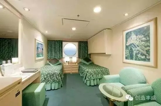 舱房介绍  内舱房-254间 *(已售空) 内舱房,房间面积约13㎡,一张双人大床可按要求转换成两张单人床。配有空调、淋浴浴室、电视、电话、WIFI网络连接(付费)、迷你吧、保险箱、衣柜。 海景房-171间(35888元/人) 舷窗海景房,房间面积约16㎡,一张双人大床可按要求转换成两张单人床。配有空调、淋浴浴室、电视、电话、WIFI网络连接(付费)、迷你吧、保险箱、衣柜。  露台房-806间(41888元/人) 露台房,房间面积约17㎡到23㎡,一张双人大床可按要求转换成两张单人床。配有空调、淋浴浴室、电视、电话、WIFI网络连接(付费)、迷你吧、保险箱、衣柜  Aurea水疗套房-18间(已售空61888元/人) 露台套房,房间面积约31㎡,一张双人大床可按要求转换成两张单人床。配有空调、宽大衣帽间、浴缸浴室、电视、电话、WIFI网络连接(付费)、迷你吧、保险箱。