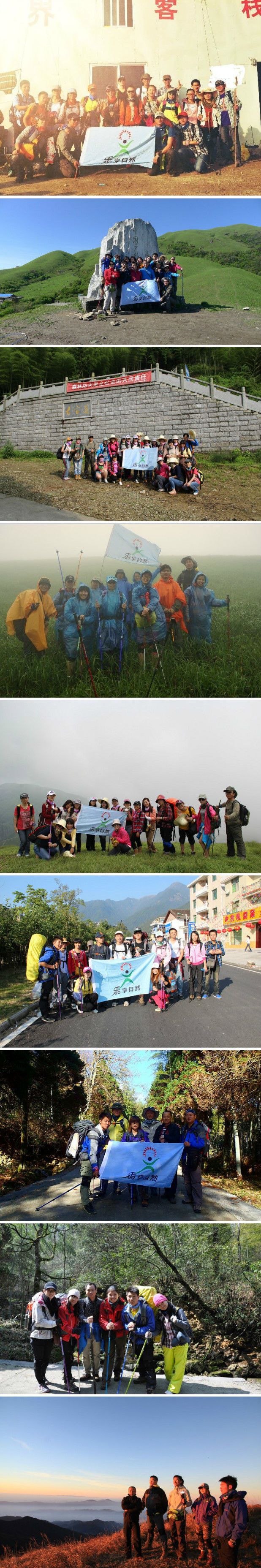 【活动行程】 D1:厦门-安福(650公里) 厦门-武功山 行车时间约9小时。 车上领队介绍行程,队员相互介绍,互动游戏,一路欢歌笑语前往江西美丽的武功山。 (宿车上) D2:安福-白龙瀑—吊马桩—白云客栈—万宝柜—金顶 07:00到达安福,吃早餐,简单洗漱,整理装备。 08:00到山脚下,开始爬山。请带够1.5升左右的饮用水。 11:30到吊马庄,午餐 12:30白云客栈拍厦门乐享自然户外集体照,欣赏武功山全景、发呆、大家自由折腾。 13:30拍完照完,整理装备,直朝金顶进发,此路段休闲,走台阶山路,不需要太多的体力,但膝盖不好的建议带上登山杖、护膝。一望无尽的草原,运气好的话还能看到漂亮的云海,徒步在云端,何等享受。 14:30到达万宝柜,在万宝柜那边拍照休息一下。走过路过千万不要错过。 17:00到达金顶。站在金顶望着刚刚征服过的山,是否很有成就感。感叹大自然的神奇魅力。 18:00 晚餐。试试金顶的野味,味道那个好呀! 18:30晚餐过后,是观赏日落最佳时分,集体向绝望坡山顶出发,占个有利位置,或和心爱的人,或三五知己,看着夕阳西下,那种感觉,真美。 晚上可组织游戏,或在山顶帐篷区一起数星星,看银河系,谈谈人生,聊聊理想。 山顶的夜晚如此多情,伴着浪漫月色,久久不舍睡去。 宿:金顶(木屋) D3:金顶—古官道—千年银杏树——安福——厦门 05:00自愿起床看日出,云海,拍照,武功山日出变幻莫测,非常壮观,难得来一次,不要错过了。 07:00自由吃早餐。 08:00集合,整装待发。走古道下安福。经过了历史的苍伤,古道依然清晰可见。两边一望无尽的草甸,野花,就让我陶醉于此吧。 11:00参观千年银杏树,这里有个传说~~~~且听下回分解。 13:00上车回厦门,晚上十点左右回到厦门,愉快结束此次活动。回来后要整理你的照片上论坛大家分享哇。 宿:车上
