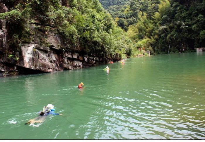 大喜溪河床较为宽阔,溪水清澈,溪流中多为浑,圆白净的岩石。全程顺流而下,其中有近10处必需泅渡,最长距离有百多米,其中还有龙潭两处危岩断崖,大家要做好防水准备,俱乐部会提供救生衣,即使不太会水的女孩也可以安全游过去。