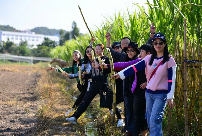 到达甘蔗园,采甘蔗,带走每根15元,自行付费给果农;