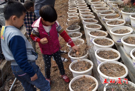 喂鸡,捡鸡蛋,体验农事乐趣,同时也培养孩子们的爱心