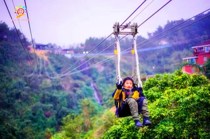 讲到刺激冒险又有速度快感的户外活动,空中滑索(zipline)可算是其中一个。特殊的是,可以提供这样活动的地方并不多,因为除了专业以外,还需很多地形地利的配合,刚好顶村就有这个优势。 顶上乡村空中滑索就是这么一项具有挑战性、刺激性和娱乐性的现代化体育游乐项目。游客穿戴吊具,悬挂在滑动小车下,以斜拉的两根钢绳为轨道,利用重力,跨越草地、树丛、溪流、山谷,借助高低之差从高处以较高的速度向下滑行。凌空飞渡,感官放大,在速度与美景中获得心理和视觉的双重体验,享受滑索的速度与激情。挑战者们在有惊无险的快乐中感受刺激和满足。 顶上乡村空中滑索有296米,落差47米左右,是目前华东地区最长的空中滑索。