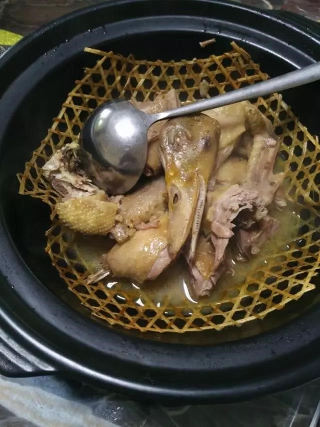 由十几味中药材加黄酒闷煮,口味独特,汤汁偏咸,但沾鸭肉又恰到好处!