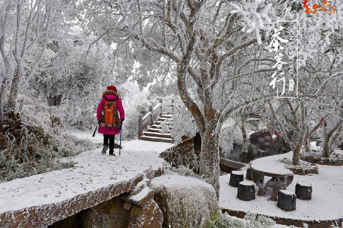 与山下青天白日不同,到达海拔1000多米的九仙深山顶有雾,有破冰点的低温,这是孕育雾凇的温床,天气适宜,运气好的话,就可以看到此景。近期都是可以看得到哦!