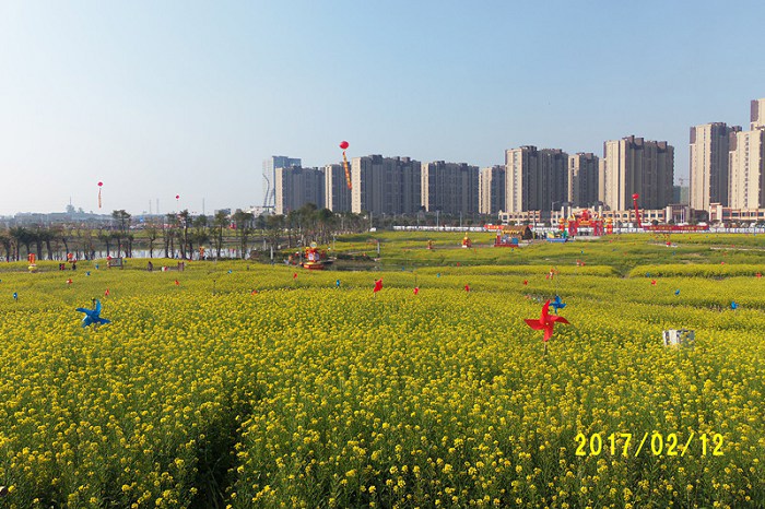 花海位于角美中心城区山水大道以东、角美大道以西,面积约200亩。油菜花集中面积为漳州之最。花田间穿插2公里步道,融入竹亭、竹舞台、稻草人、欧式风车及花田瞭望台等景观小品。青阳河穿过花海,沿河配备栈道、湖中亭等设施。建设单位为漳州经济发展有限公司,施工单位为福建省汇泽园林开发有限公司。据了解,花海根据四季变化,培育油菜花、洋菊花、美人蕉等观赏花卉,实现四季鲜花不断。今年春节为第四期花海,刚好春节黄金周全部绽放。