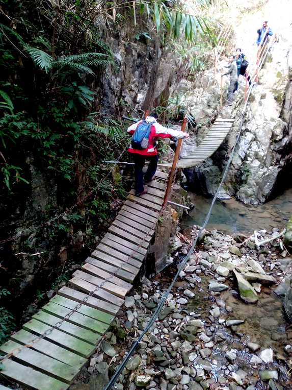 ,要一线天边上修筑了一座摇摇晃晃的小木桥,可供游玩。
