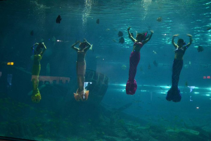 穿过时光隧道,来到深海奇幻之旅。占地3500平方,海底人鱼畅游,倾情演绎海洋之歌;失落的古希腊巨人碎片诉说着古老的海底故事;踏入极地动物部落,仿佛置身于冰天雪地的生态圈,领略人与自然间微妙的联系;穿越地球最深的马里亚纳海沟,感受水下8000米的深海世界;坐上小火车,穿越海底森林,体验奇幻冒险海岛!馆内采用裸眼3D技术还原人鱼舞台,使用AR增强现实,带来全新的沉浸式体验!