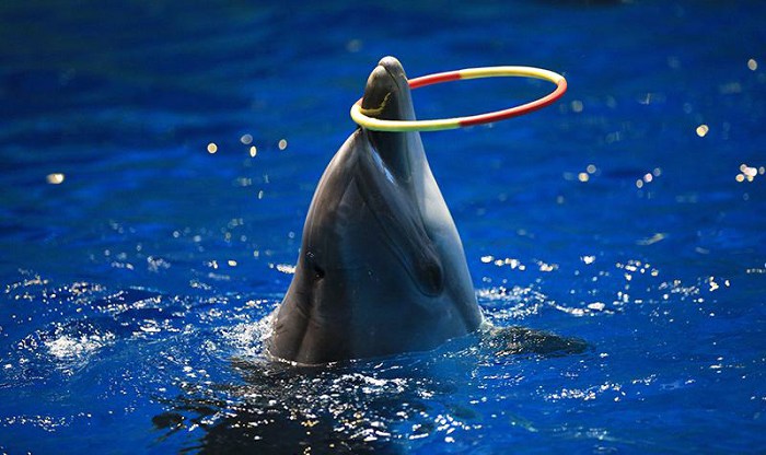在容纳1500位观众的剧场里,海豚、海狮等海洋精灵们将献上搞趣、精彩的演出。