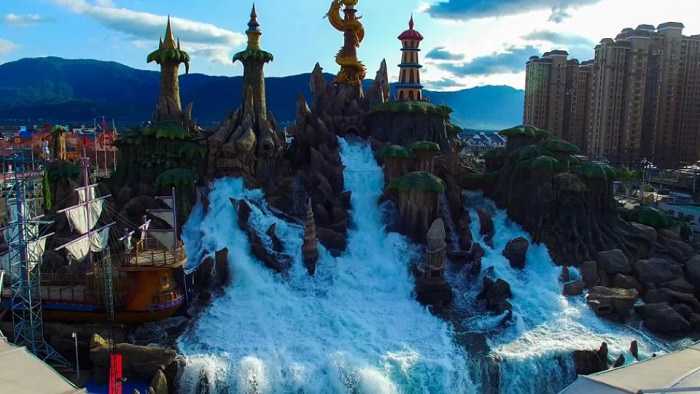 海上搏斗是世纪金源集团打造的国内大型水上高空竞技表演场,引进好莱坞的设计理念,营造独具一方特色的“大海啸”景观。1500多吨的海水瞬间从20几米的高空奔腾而下,气势恢宏,场面壮观,以此为背景配上大型歌舞、杂技、魔术等表演,给人无与伦比的震撼与视觉冲击。热情狂野的祭祀舞蹈、真刀实枪的近身肉搏、高空钢丝打斗、自由花式降落、生死转轮、扣人心弦的殊死搏斗、伴随神龙的腾空而起,爆发出气势恢宏的大海啸,都将在9000多平方米的空间上演,带您领略空中翱翔、海上冲锋陷阵的酣畅淋漓!