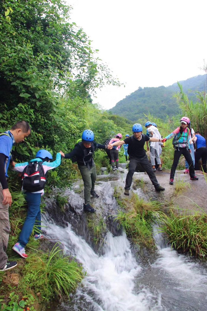 本次活动,两个峡谷连续穿越,采取先过一溪而上攀爬至牛岭山顶部,后下山至北山底部。