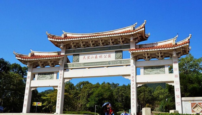 抵达天竺山,天竺山是国家森林公园,位于厦门市郊区西北部的国营天竺山林场内,距厦门市区36公里,总面积为2651公顷,森林覆盖率达到96.8%;乔木层树种以马尾松为主,有太姥山奇石连成景观,又有兔耳岭竹博园竹海风景;